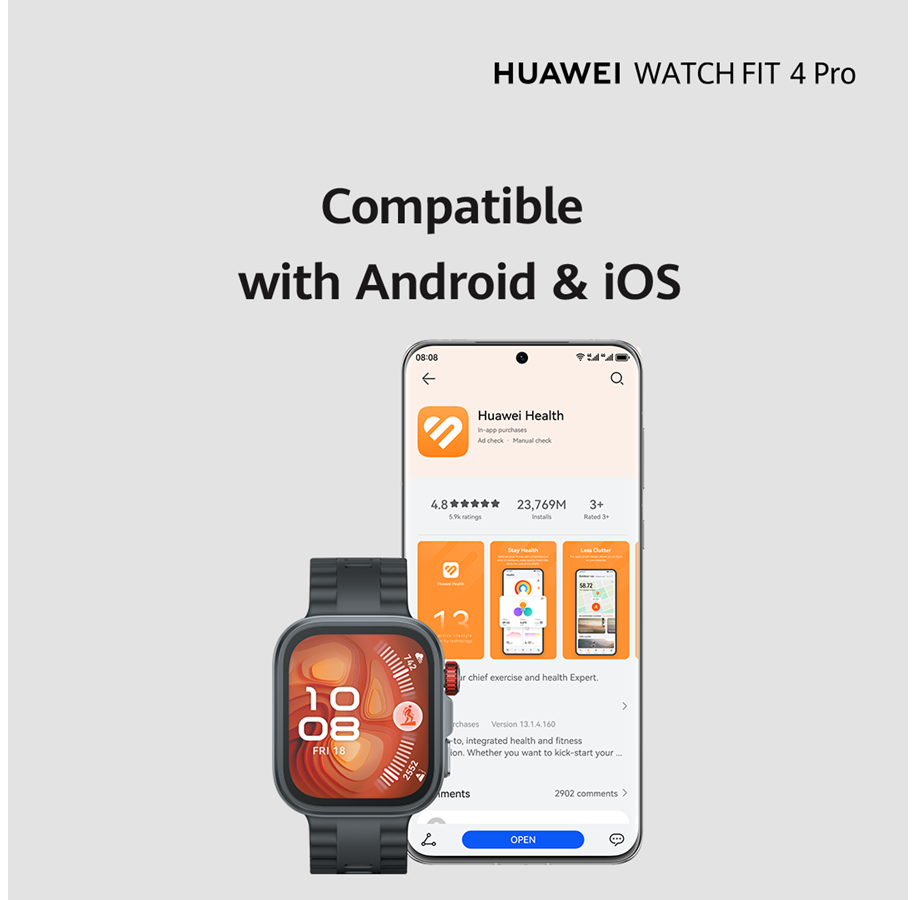 the Huawei Watch Fit 4 Pro offers flagship-level fitness & health features, stunning AMOLED display, long battery, built-in GPS, and premium build – one of the best value smartwatches in its class. Ideal for running, gym, swimming, daily health tracking, or as a stylish everyday wearable.
