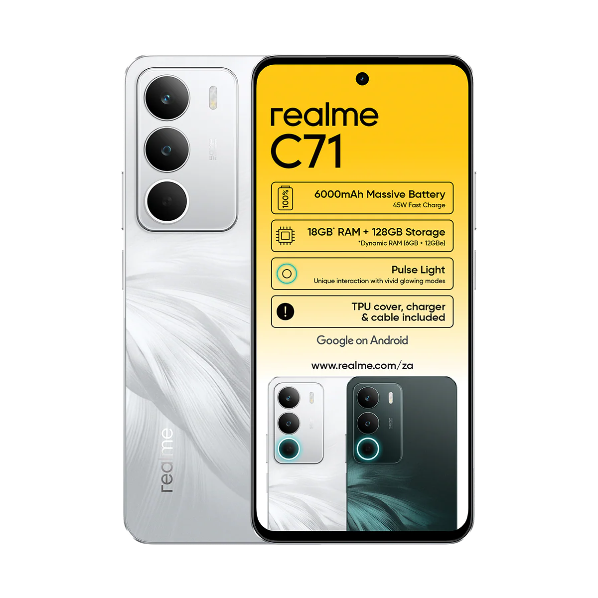 - Runs Android 15 with Realme UI – clean interface, Google Play Store, multi-window support, eye comfort mode, and long updates